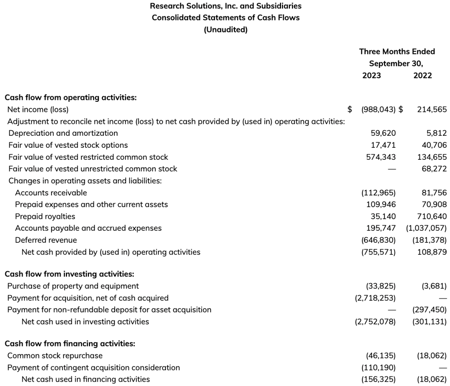 HENDERSON, Nev., Nov. 9, 2023 /PRNewswire/ -- Research Solutions, Inc. (NASDAQ: RSSS), a trusted partner providing cloud-based workflow solutions to accelerate research for R&D-driven organizations, reported financial results for its fiscal first quarter ended September 30, 2023.