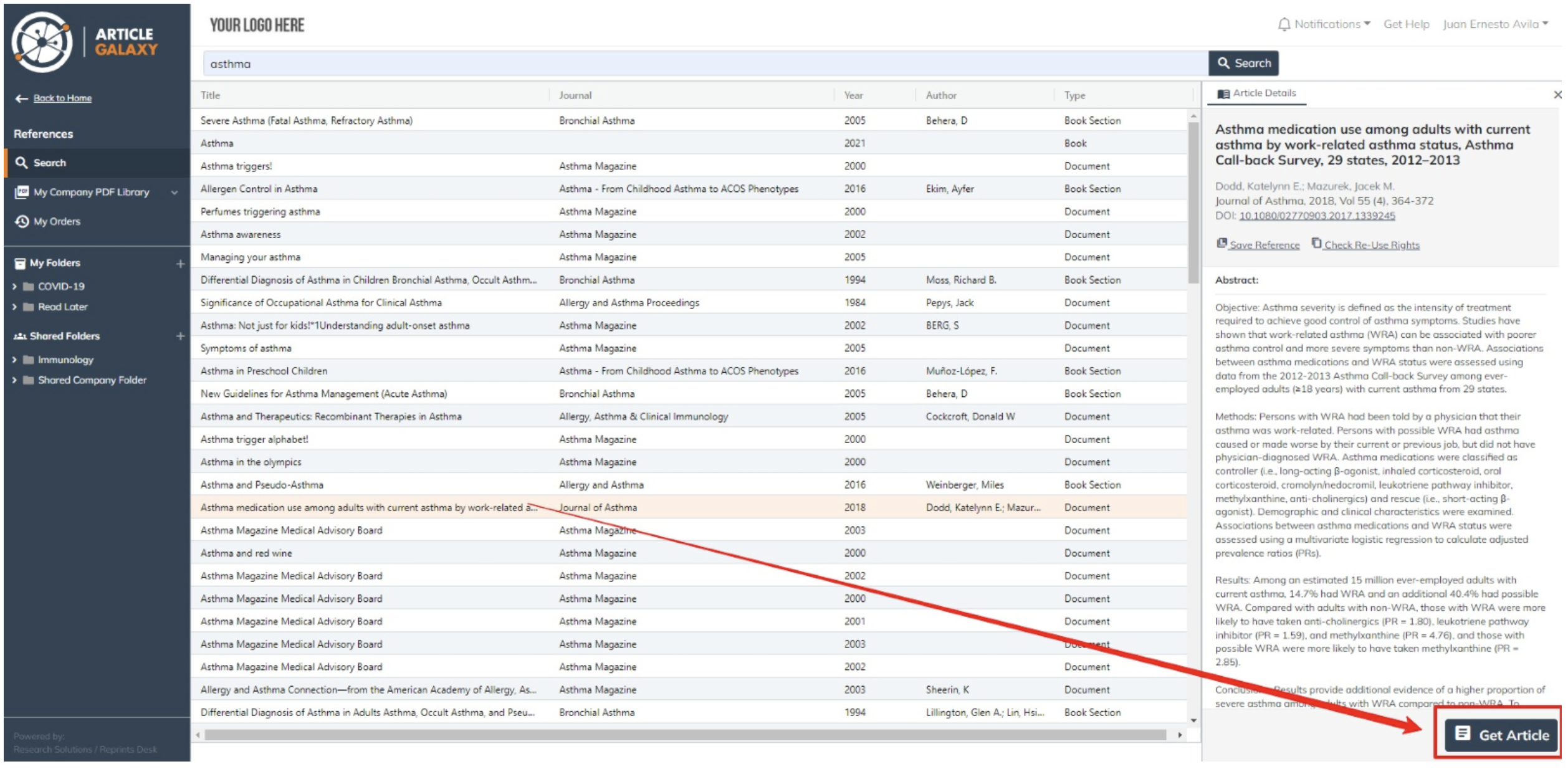 Company PDF Library allows organizations to keep track of all their PDFs in one place while enabling users to search for company-owned articles and then organize articles based on their needs.